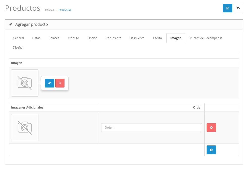 Agregar Productos > Pestaña Imagen