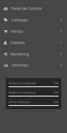 El Menú Lateral es el sistema de navegación del Área de Administración. Mediante el Menú lateral tendrá acceso a todas las secciones del Área de Administración de su tienda.